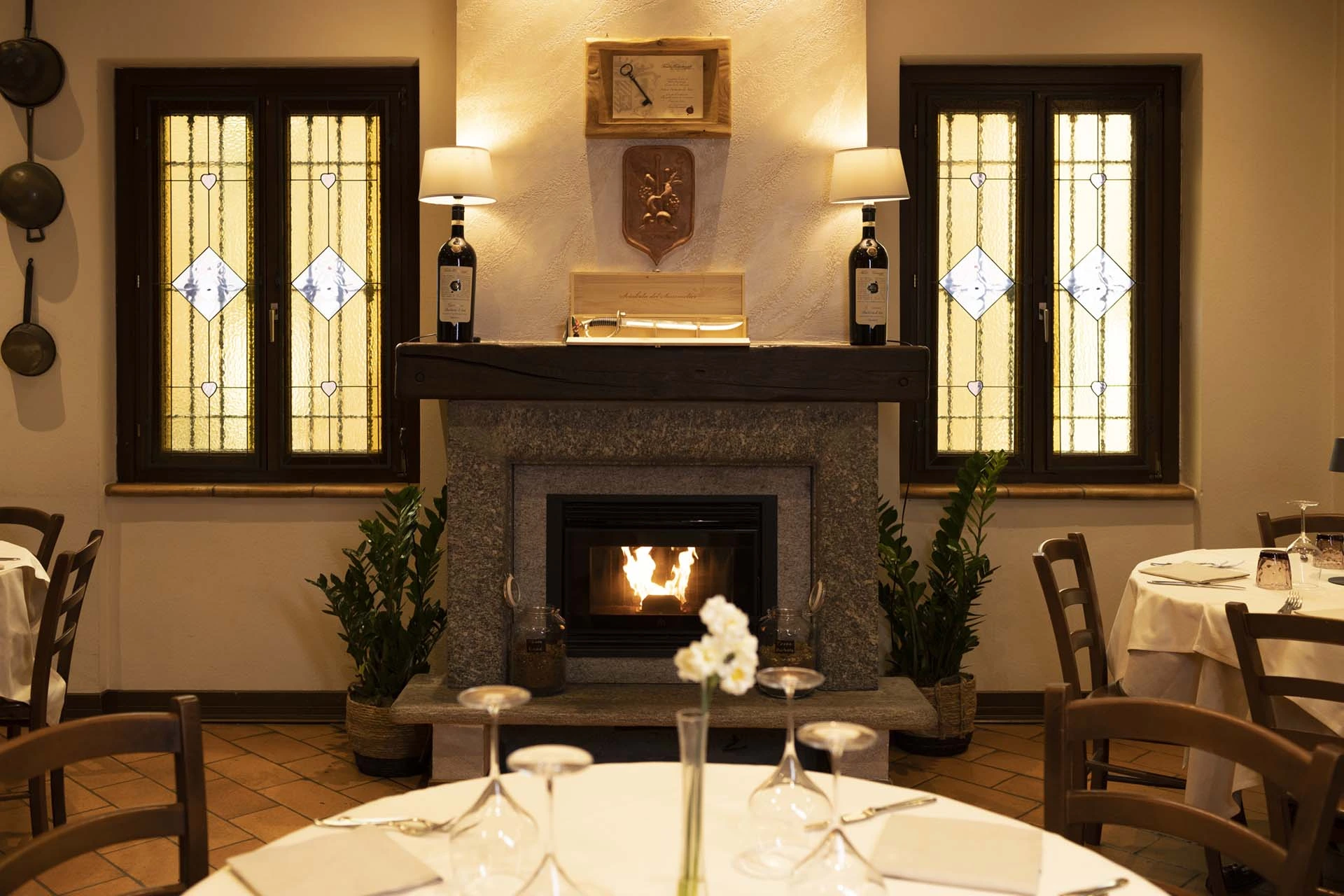 Una sala principale con circa 40 coperti con suggestivo camino acceso durante i mesi invernali e una sala vineria da circa 25 coperti, ideale per gruppi che desiderano uno spazio dedicato per compleanni, cene di lavoro e altre occasioni speciali.